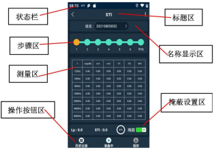 点击“STI”进入STI界面,界面显示如图6所示。步骤区显示:一个完整的STI测量需进行6次测量,根据6次测量的STI计算出平均STI。